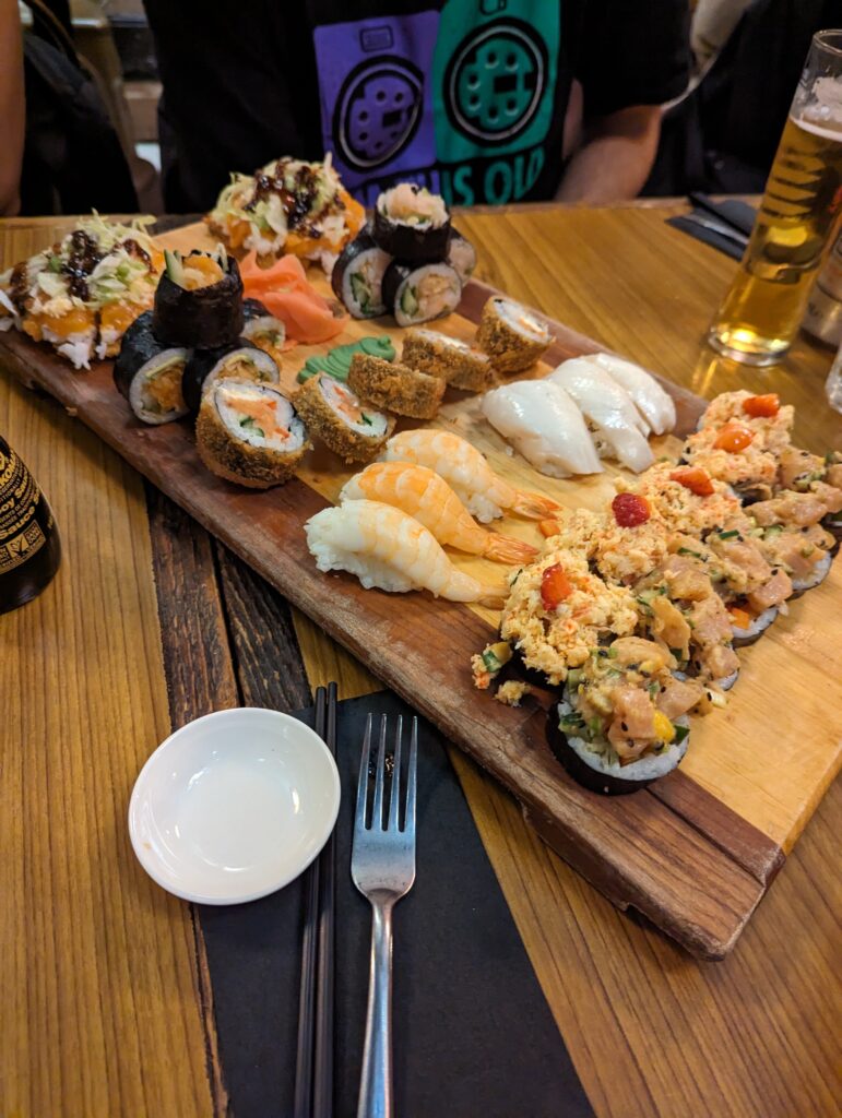 Dinsdag was het weer niet zo goed. En met niet zo goed bedoel ik dat het echt de hele dag geregend heeft. We zijn dus binnen gebleven en hebben wat spelletjes gedaan en films gekeken. In de avond werd het iets droger, droog genoeg om ergens te gaan eten. We hadden zin in sushi en we hadden een plek gevonden die best prima reviews had, dus daar zijn we heen gelopen. De sushi viel inderdaad niet tegen.